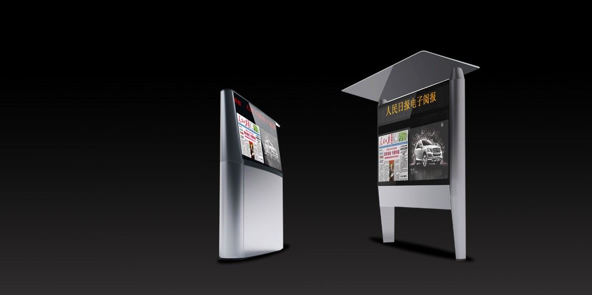 戶外電子閱報(bào)欄分成有頂棚和無頂棚兩種款式,適用于不同的公共場所供人們閱讀。