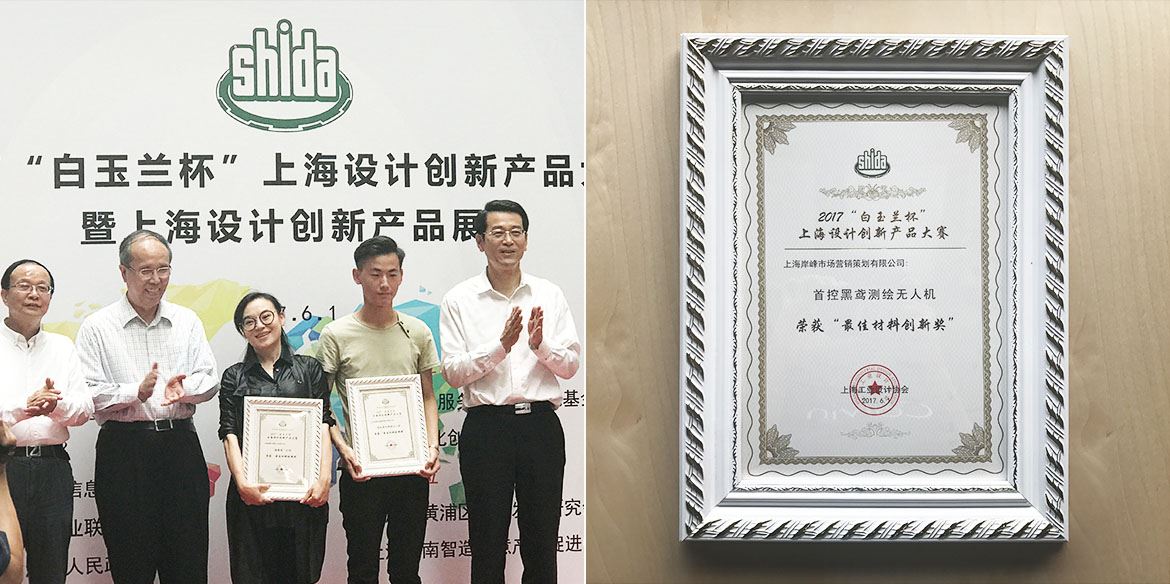 岸峰團(tuán)隊(duì)設(shè)計(jì)作品--首控黑鳶測(cè)繪無(wú)人機(jī),一舉拿下2017“白玉蘭杯”上海設(shè)計(jì)創(chuàng)新產(chǎn)品大賽“最佳材料創(chuàng)新獎(jiǎng)”