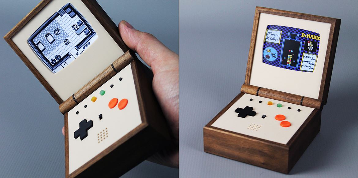 由瑞典知名設(shè)計師及游戲愛好者愛?胡爾騰(Love Hultén)融合傳統(tǒng)工藝與現(xiàn)代最新技術(shù)制作的精致而奢侈的小盒子,是一個可以插搖桿的便攜模擬器,有了它,游戲愛好者就可以把自己喜歡的游戲帶在身上,隨時隨地想玩就玩。其實準(zhǔn)確地說這是一款名為pixel vision的復(fù)古款便攜式微型游戲機,只有人手掌般大小,用棕色美國胡桃木和老式的電子器件全手工打造,就像他以前曾經(jīng)親手制作的致敬Macintosh 128KB的復(fù)制版“Golden Apple”一樣,通過設(shè)計師愛?胡爾騰(Love Hultén)的一雙巧手,讓這款初代蘋果麥金塔時隔三十年再度重現(xiàn)。