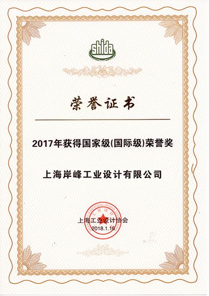 岸峰出席上海工業(yè)設(shè)計(jì)協(xié)會(huì)年會(huì),并榮獲“2017年國(guó)家級(jí)(國(guó)際級(jí))榮譽(yù)獎(jiǎng)”