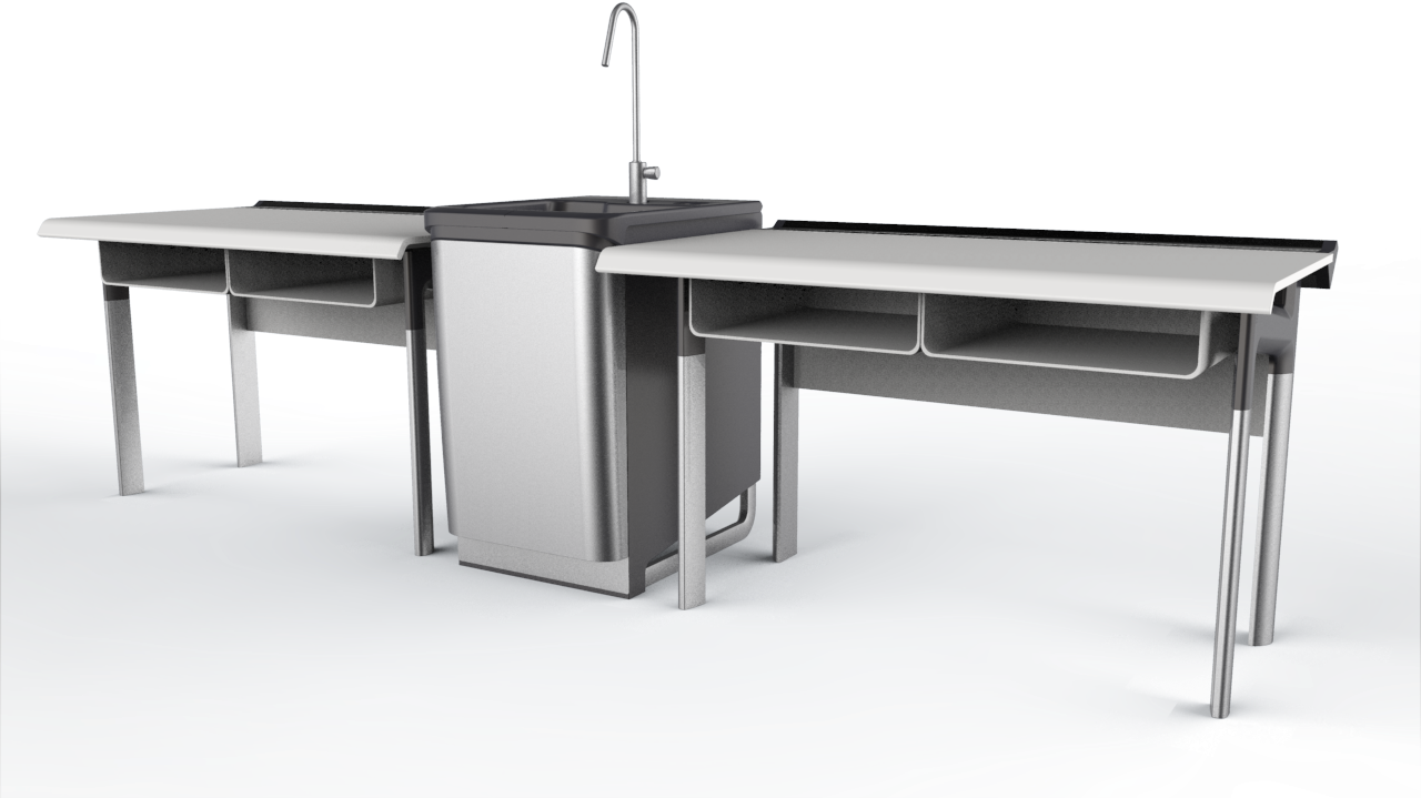 創(chuàng)意理念:此款試驗臺是針對學校實驗室設計的試驗臺,造型簡潔,線條流暢,臺面寬敞,配有水管和桌洞便于使用。