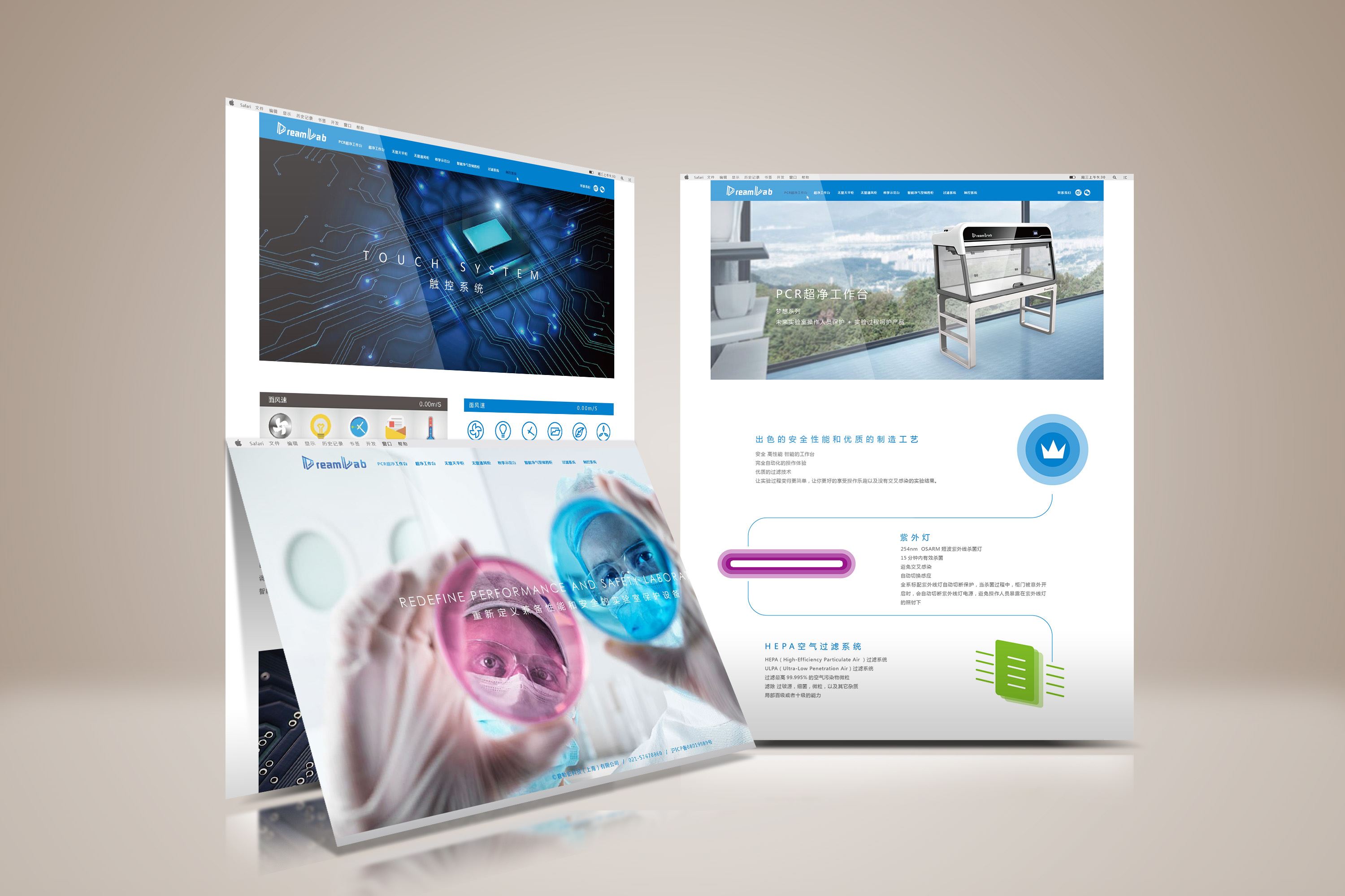 采用嚴(yán)謹(jǐn)?shù)膶嶒炇覉D片突出其專業(yè)性和安全性同時著重介紹其主推的幾款產(chǎn)品,從參數(shù)到功能讓用戶可以直觀全面地感受產(chǎn)品
